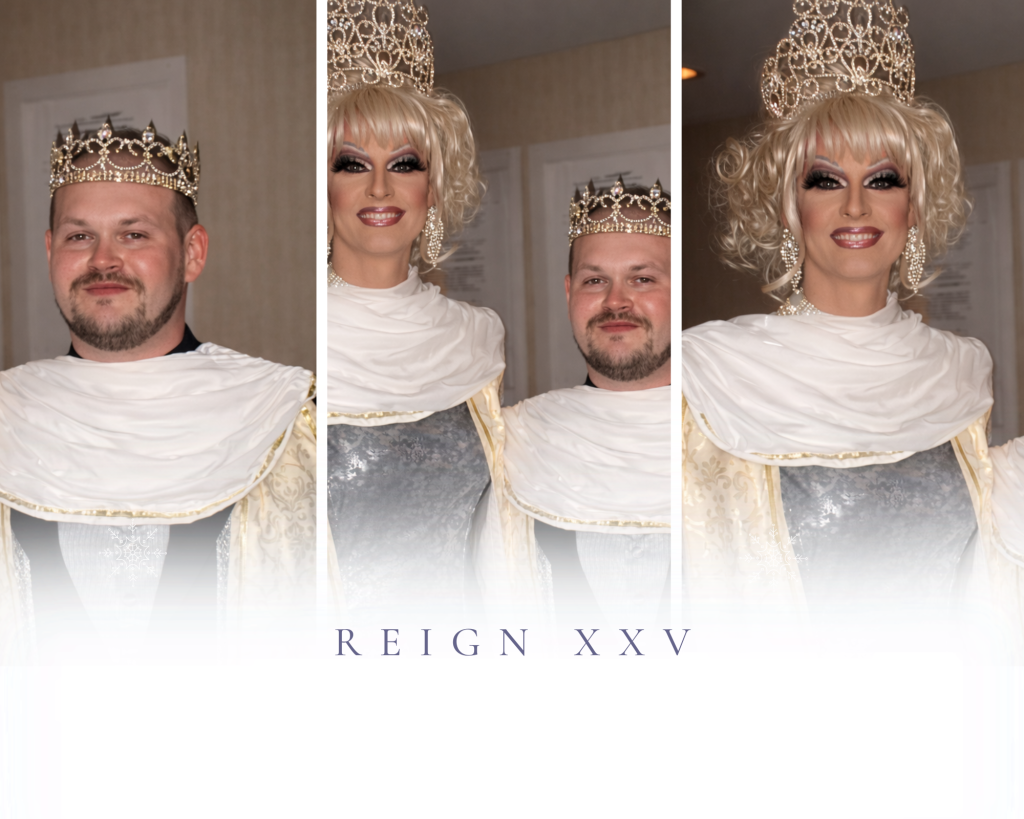 Founded in 1982 by Gigi Galore (Greg Butler) and Blanche Pink (Marlon Austin), the Imperial Court of Kentucky, Inc., is a nonprofit charity that supports the LGBTQ+ community of Kentucky “one dollar at a time” through drag shows, social programs, and fundraisers. The Court uses the modus of English peerage to establish lines of descent, with each year monarchs being elected. These “royals” represent the court throughout the upcoming year. The Court is a charter member of the International Court System with kingdoms in the US, Canada, and Mexico. We celebrate our rich history and the amazing Monarchs who have served our community since our founding. Click below to view each Reign